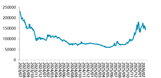 供给悲不雅预期下,价钱密集运行区间或在【140000,190000】元/吨。