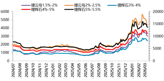 本年一季度锂矿价钱跟着锂盐价钱反弹,从1500好意思元/吨隔邻的价钱升至2387好意思元/吨,现时于2000好意思元/吨隔邻轰动;国内现货市集5%-5.5%锂辉石精矿价钱从11150元/吨上升至15850元/吨,现在于13650元/吨隔邻轰动,2%-2.5%锂云母价钱从3550元/吨上升至5700元/吨,现在于4400元/吨隔邻。
