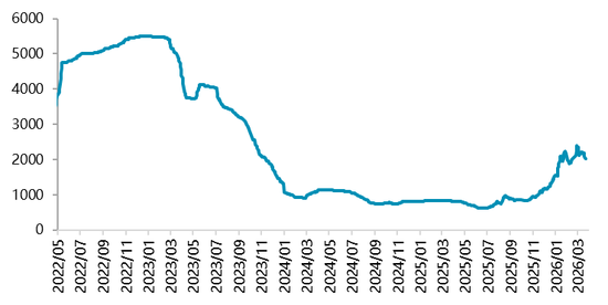 图 1.3:电碳-工碳价差走势图(单元:元/吨)