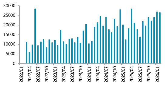 南好意思矿山和盐湖情况:Cauchari-Olaroz名堂年末已接近满产,分娩老本踏进寰球锂化工品分娩企业最低梯队,PPG名堂与二期扩建名堂,是好意思洲地区最具后劲的两大锂化工品大型供应契机。2025年年度产量概念3-3.5万吨,最终全年产量34100吨,2026年碳酸锂产量带领35000-40000吨。SQM的阿塔卡玛盐湖2025年产量23.4万吨,2026年接洽增多2万吨,雅宝的阿塔卡玛盐湖产区接洽增多1万吨障碍,SQM名堂增量多以硫酸锂方式产出。是以,咱们看到本年1月智利硫酸锂出口量创历史新高,达到2.78万吨什物吨,2月智利硫酸锂出口总量为1.21万什物吨,相通一说念出口至中国,环比下跌56.50%,但同比增长17.10%。