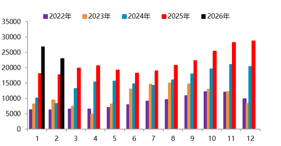 需求端:本年1-2月新能源汽车产量同比下跌8.8%,但由于近期出口证据超预期,重迭汽车带电量擢升以及重卡渗入率在提高,是以咱们保管能源耗锂量20%的增速预期;储能方面,1月寰球储能电芯市集接续高景气态势,头部储能电芯厂产能运用率保管高位,地缘政事导致市集能源转型需求更加遑急,但短期地缘政事减速以致远离了部分中东地区部分储能名堂的投放,暂保管岁首关于储能出货量增速的预期不变。