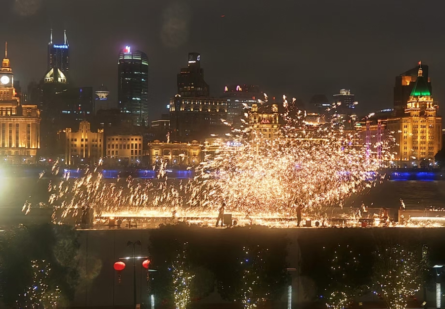 更让丹尼尔惊喜的是,昨天晚上,在浦东滨江,还上演了“打铁花”这一中国传统非遗展演。虽然天空飘着冬雨,寒气逼人,但还是有不少市民游客聚集在周围,感受浓浓的中国节日氛围。