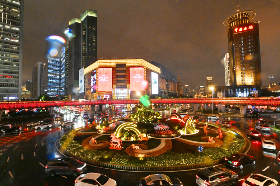 大街小巷张灯结彩,中国红浸染全城。500条市政道路、89座口袋公园、103座城市公园,布置红灯笼、中国结。600个重点路段的公交车站,投放节日宣传画面。全区50个商圈及景区景点的户外大屏资源,上线新春主题宣传内容。