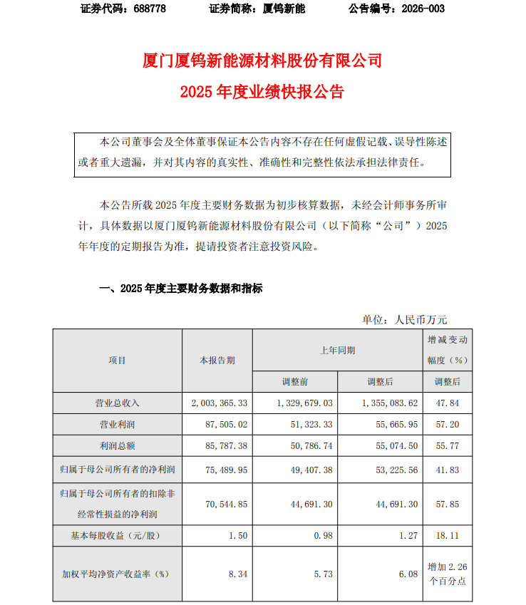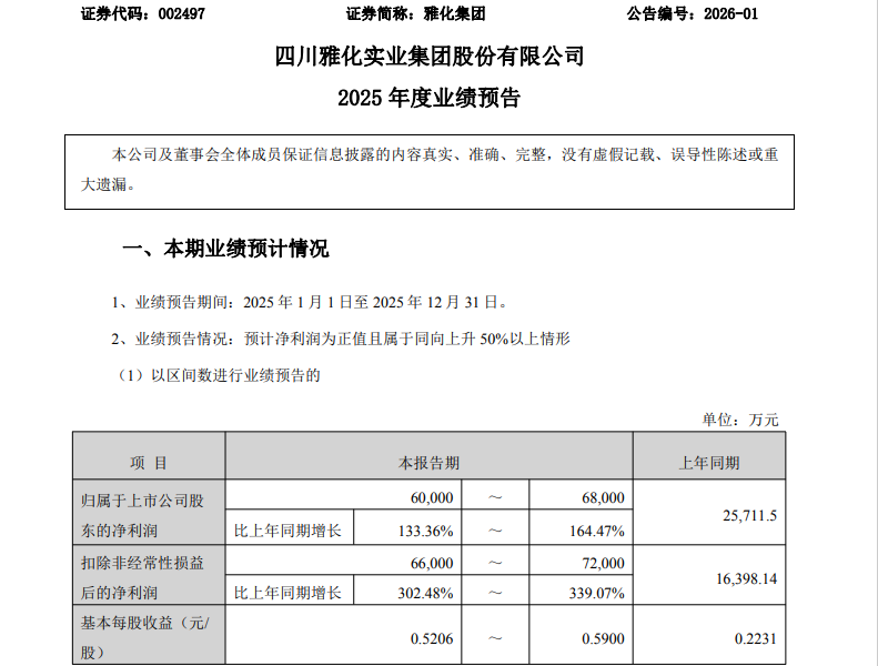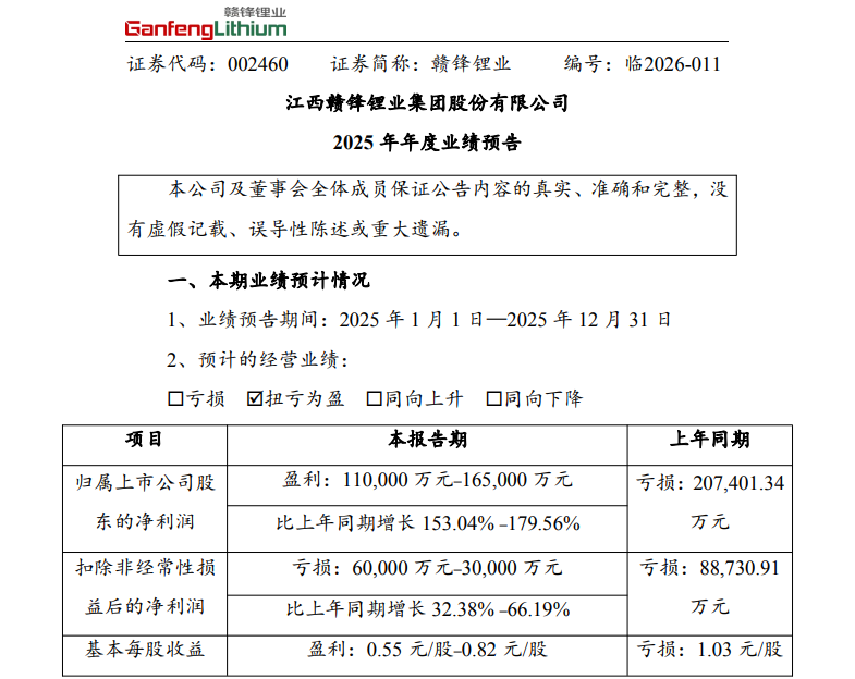 1月28日,锂电池产业链的三家代表性企业——四川雅化实业集团股份有限公司、江西赣锋锂业集团股份有限公司和厦门厦钨新能源材料股份有限公司同日发布了2025年度业绩预告。