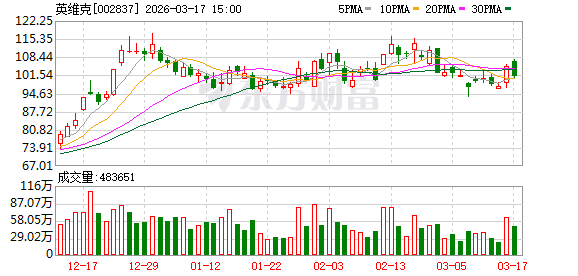 二级市集上,英维克是一只大牛股,近一年时期,该公司股价暴涨超4倍。具体来看,英维克股价旧年4月最低涉及21.51元/股,随后连接反弹,旧年底最高涉及117.30元/股,其间涨幅跳跃445%。2026年以来,英维克股价一直保管高位颠簸,最近几个来回日有所退换。