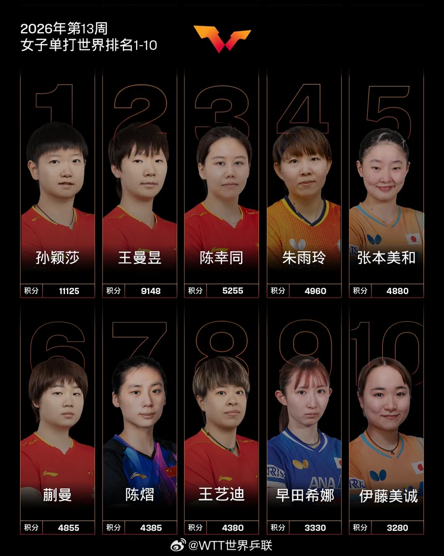 近日,外洋乒联2026年第13周寰球排名揭晓。王楚钦、孙颖莎鉴识位列男女单打寰球排名第一,国乒虽延续男女单打榜首管辖,但更生代主力林诗栋、蒯曼排名下滑,突显出年青选手在抓续竞争中的潜力不及。男单赛场,林诗栋一起跌至第五,无缘澳门寰球杯种子席位;女单赛场,蒯曼排名降至第六,走漏了外战疲软的问题。