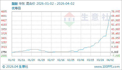 据买卖社监测,醋酸04月02日最新价钱4700.00元/吨,最近5天上升30.19%,10天上升40.02%,20天上升54.95%,30天上升68.06%,90天上升70.91%。