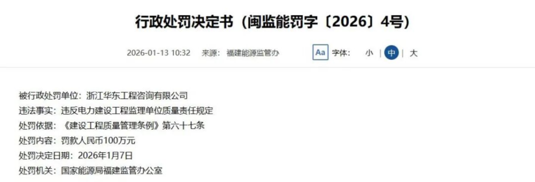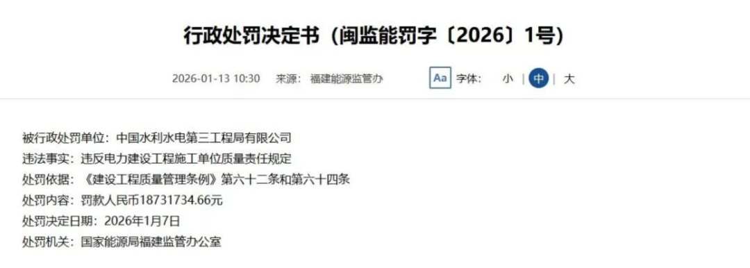 时辰再往前推,2026 年 2 月,中国电建旗下上海电力建树有限株连公司,因在多个电力神态中存在作歹分包、将工程转包给无天禀单元等问题,被监管部门处以 7.05 万元罚金。